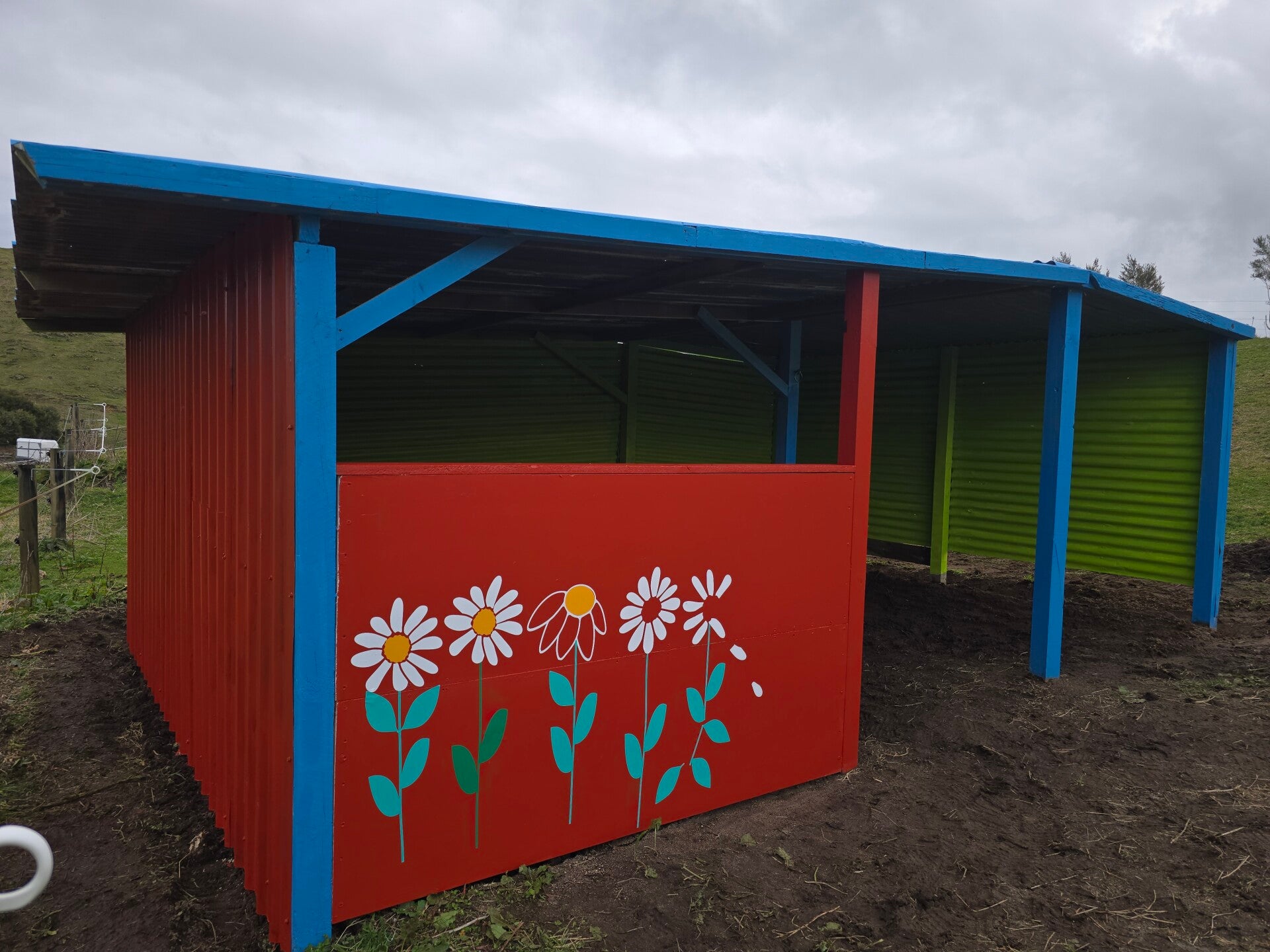 These are seriously cool and made in permanent outdoor weather resistant vinyl...the idea came from the arrival of my Gypsy Cob 'Daisy' who's in foal and I thought it would be cool to welcome her with a big daisy flower on her shelter...I have all boyz on the property (except my wee baby girl donkey Roo) so we needed to 'girl' it up a bit! The daisy heads are 30x30 cm's so with the stems they are just shy of a meter tall! They have stuck like glue much to my surprise...and they sure have had a beating by the weather! I'm just starting to have a play in this idea and am looking at other big flowers ...and a try of removable vinyl glow in the dark stars for inside the shelters...so stay tuned...