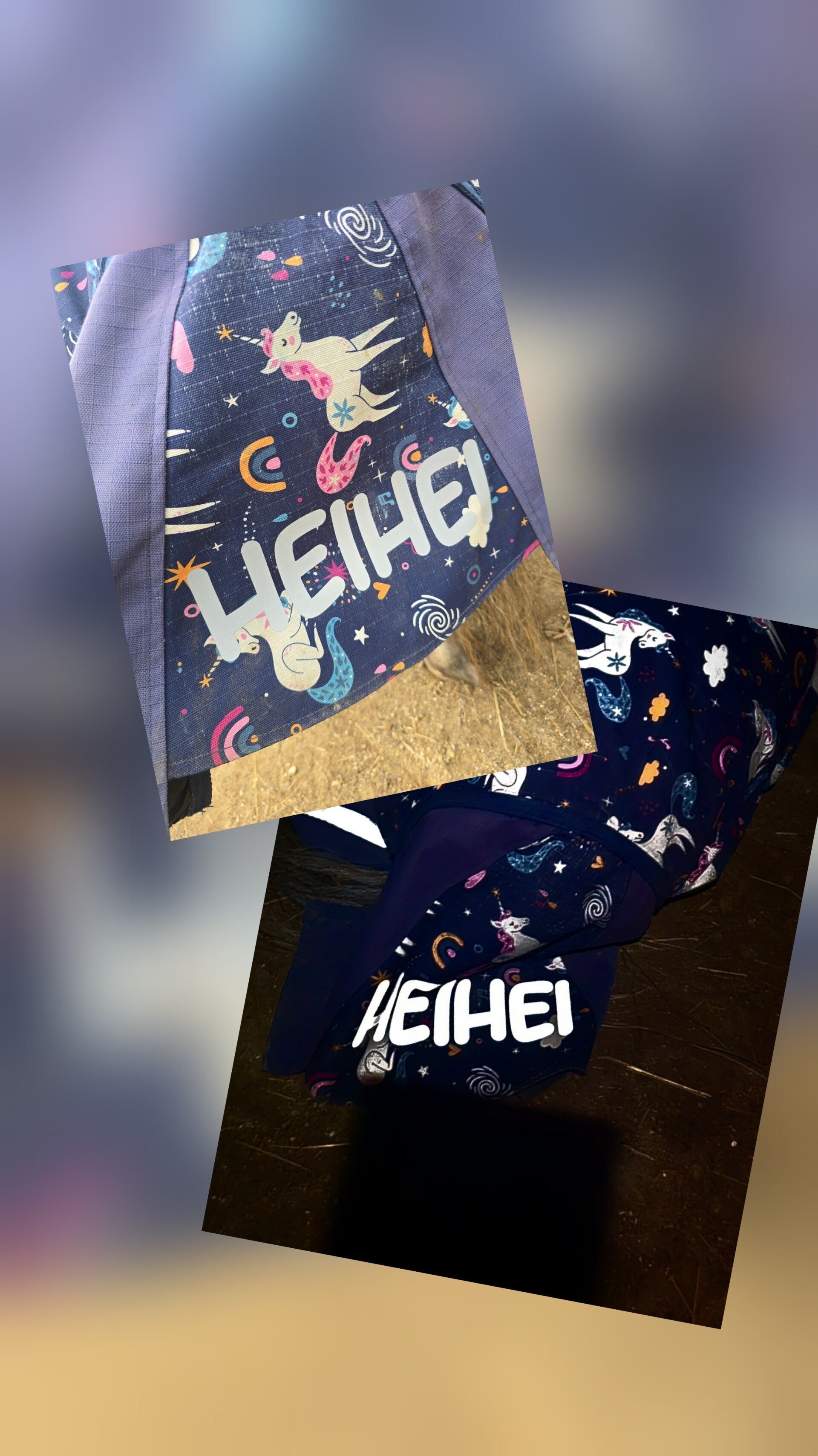 So the Donkey (Ass-themed idea was born ) NameYourAss ...IluminAss...ReflectorAss these are easy as to attach on the denier ripstop cover material and also canvas ...just by using your home iron or a heat press if you have one...as long as you adhere them clear of any seams they will be sweet! These have been tested on my two mini donkeys...my mini...several young gypsy cobs and my big fella clydieX .. in the pouring rain..mud...just good old herd destruction machines :) and they have stayed put!